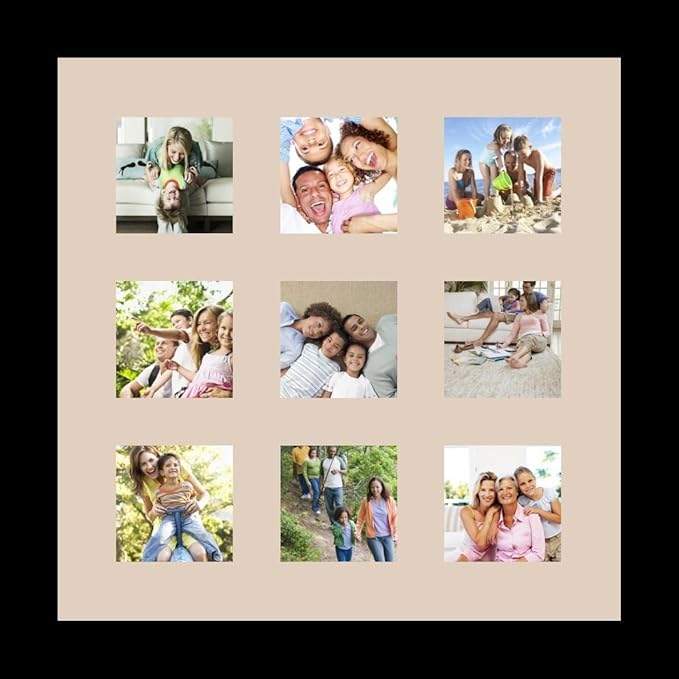 ArtToFrames Collage Photo Frame Single Mat with 9-3x3 Openings with Satin Black Frame and Scotch Mist mat.