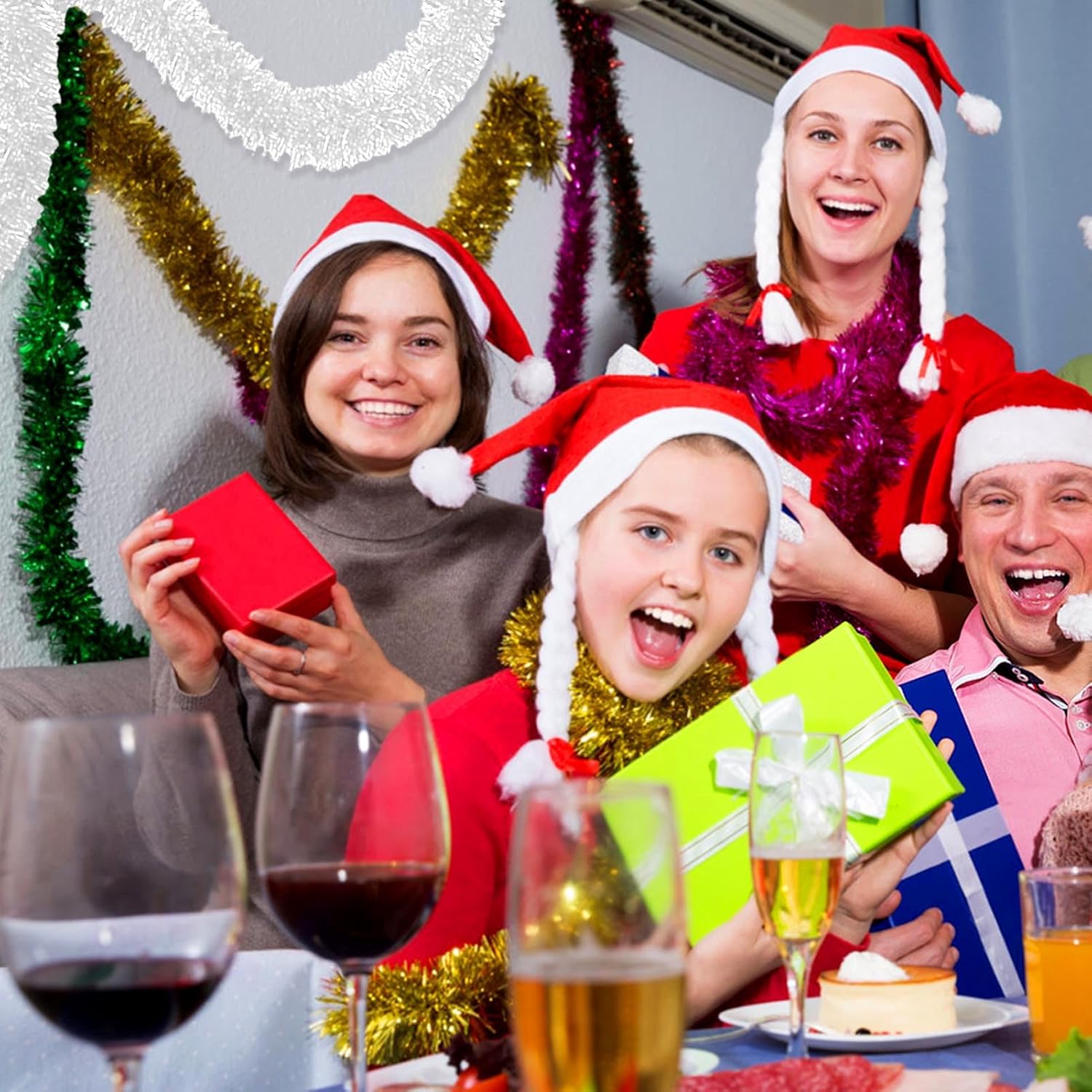 - Applicable Occasions: with exquisite workmanship, these glitter tinsel twist garlands can be hung on your walls, trees, or others; So you can use them to decorate your photo frames, garlands, gift wrapping, decorating tables, Christmas trees, home stairs, and more. This shiny tinsel Foil Fringes garlands is also Perfect for parade floats, as shiny tassel banner, use to run along the top of a backdrop or anywhere you want to add shimmer.
